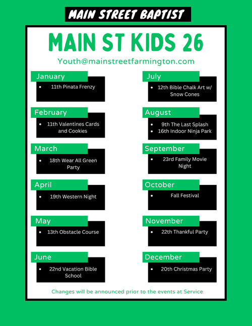 Main Street Kids is a ministry for students in grades 2nd-5th.